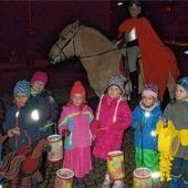 Zum ersten Mal führte ein Reiter den Martinszug beim Kindergarten St. Pius in Mühldorf an. Die Kinder zogen mit ihren Laternen durch die Straßen und sangen Lieder. Foto re zum Artikel