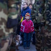 Ein Fest in unsicheren ZeitenEin Kind mit einer Mütze in den Farben der litauischen Flagge steht zwischen Soldaten: Litauen feiert den 34. Jahrestag seiner Unabhängigkeitserklärung von der Sowjetunion – aber fühlt sich derzeit extrem bedroht vom... zum Artikel