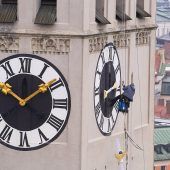 Wer hat an der Uhr gedreht?Sie war ein aufwendiger Drahtseilakt, die Montage der neuen Zeiger für die Turmuhr am Alten Peter in München. Im November hatte ein Sturm das Ziffernblatt beschädigt, gestern brachten Industriekletterer die reparierten... zum Artikel