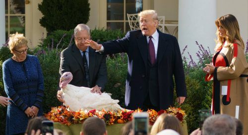 Trumps schützende HandUS-Präsident Donald Trump hat in einer traditionellen Zeremonie vor Thanksgiving zwei Truthähnen das Leben geschenkt. Bei dem heutigen Familienfest werden in den USA gerne ihre Artgenossen serviert. „Peas“ (Erbsen) und „Carrots“ (Karotten) sollen aber nicht im Ofen schmoren. „D