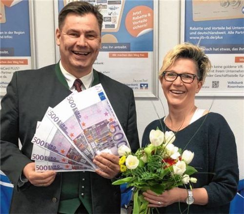 Claudia Meiereder (rechts) staunte nicht schlecht, als sie einen Anruf ihres Kundenberaters erhielt. Bei der März-Auslosung des VR-Gewinnsparvereins Bayern fiel ein 2500-Euro-Gewinn auf ihre Losnummer. Hans Eder, Hauptgeschäftsstellenleiter der Volksbank Raiffeisenbank in Bruckmühl, überreichte ihr
