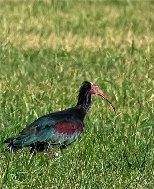 Einen Waldrapp hat unsere Leserin Ina Hain aus Kolbermoor jetzt nahe Feldolling gesehen. Schnell hielt sie den Vogel fotografisch fest. „Dieser seltene Vogel, der durch seine Ähnlichkeit zu einem Ibis meine Aufmerksamkeit erregte, habe ich gleich fotografiert“,