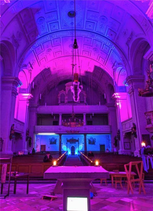 Für zwei Tage wurde die Sankt-LaurentiusKirche in Feldkirchen mittels spezieller Scheinwerfer und Kerzen in mystisches Licht getaucht. Zusätzlich wurden Texte, die zum Nachdenken anregen sollen, auf den Altar und die Empore projiziert. Auch Musik zum Entspannen ertönte. So konnten sich die Besucher