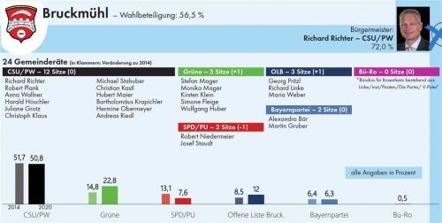 Bruckmühl – Der Wahlabend war spannend bis zur letzten Sekunde. Würde die CSU ihre absolute Mehrheit im Marktgemeinderat verlieren oder sie weitere sechs Jahre behalten? Erst der letzte ausgezählte Stimmbezirk brachte die Entscheidung. Die CSU/PW hat es geschafft. Sie bleibt mit zwölf Mandaten und B