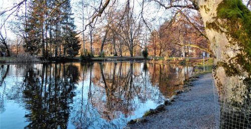 Ein Spaziergang im Bad Aiblinger Kurpark ist Erholung pur: Man wandert um den Irlachweiher, vorbei an den Geräten des Mehrgenerationenparks, dem Tastgarten und vorbei an der großen Vogelvoliere. Besonders spannend, wenn sich die riesenhaften Bäume im See spiegeln. Übrigens: Entstanden ist der Park 1