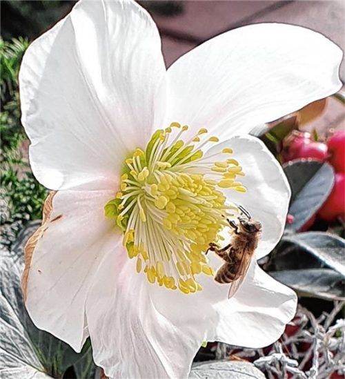 Bei frühlingshaften 15 Grad Celsius entdeckte Leser-Reporter Hermann Strasser aus Tuntenhausen diese Biene noch vor wenigen Tagen in seinem Garten. Sie sammelte schon fleißig Blütenstaub von den Christrosen. Inzwischen wird sich das Insekt wieder in seine Beute verkrochen haben, denn der Winter ist