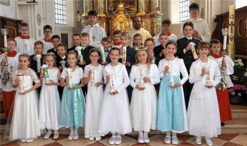 Unter dem diesjährigen Motto „Ihr sollt ein Segen in Jesus und in der Welt sein!“ feierten 19 Kinder der Pfarrei St. Martin in Au ihre heilige Erstkommunion. Für die jungen katholisch getauften Christen, ihre Eltern, Großeltern, Geschwister und Angehörigen wurde dieser Sonntag zu einem besonderen Fe