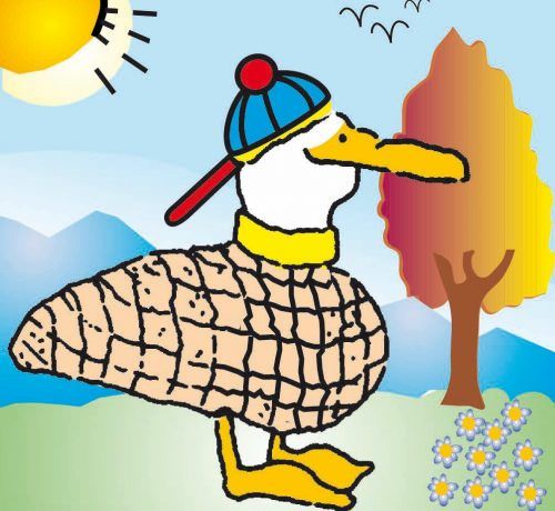 Meine Entenfreundin Klara traute sich gestern nicht, mit mir und Agnes ins Dorf am See zu fliegen. Dabei gibt es dort gerade jetzt im Herbst besonders viel zu sehen – etwa die vielen Kürbisse, die seit Kurzem auf einem großen Haufen am Rande des Dorfparkplatzes liegen. Als ich davon schnatterte, ris