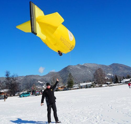 Kreuth – „Pffffrrrrrrrssssch!“, faucht der Gasbrenner in die knallgelbe Kunststoff-Hülle. Hinter verspiegelten Sonnenbrillengläsern nickt Andreas Pohl seinen beiden Helfern zu, die sich an die Halteseile am Bug klammern. „Leinen los!“, schmettert Pohl ins Mikro. Leinen sind l
