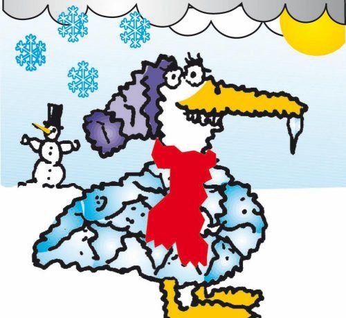 Ist das vielleicht kalt bei uns am See! Als ich gestern Abend durch das Dorf in der Nähe des Sees gewatschelt bin, kam ich an einem Garten vorbei. Da sah ich ein kleines Kind, das dick eingepackt im Schnee spielte. Doch selbst das schien gegen die eisige Kälte nicht zu reichen. „Mir ist kalt, ich ha