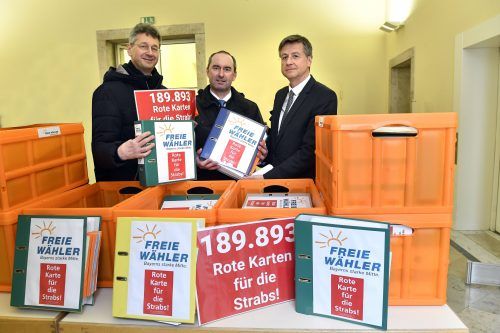 So viele Unterschriften für ein Volksbegehren gab es noch nie. 189 893 Unterschriften gegen die Straßenausbau-Beiträge haben die Freien Wähler gestern beim bayerischen Innenministerium eingereicht. Nötig wären nur 25 000. Cornelius Thum, Leiter des Sachgebiets Verfassungs- und Wahlrecht, nahm die Li
