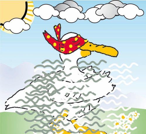 Gestern flatterten wir Enten zum Bauernhof in der Nähe des Sees. Da wohnen auch Schafe, die wir manchmal besuchen. Sie freuten sich sehr, dass der Schnee endlich weg ist – auch deshalb, weil sie zum ersten Mal aus dem Stall und auf die Weide durften. „Frühling, juhu!“, blökten sie. Uns Enten fiel au