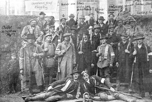 Alle waren sie dabei. Der Mesner, der Wirt, der Onkel Sebastian, der Stahuber Wast – das Foto von der Bürgerwehr aus Krügling, das uns Johann Stahuber aus Feldkirchen-Westerham zuschickte, hat Seltenheitswert. Denn es ist beschriftet. So sieht man, dass sich ein ganzes Dorf gegen die verhassten „Rot