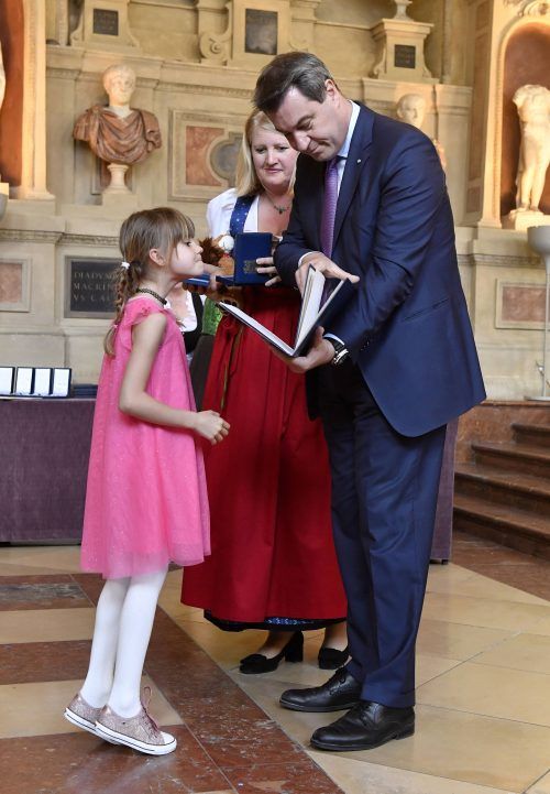 München – So ein Ministerpräsident ist ganz schön groß. 1,94 Meter, um genau zu sein. Davon lässt sich sich Melina Hacker, sechs Jahre alt, die gefühlt ungefähr die Hälfte misst, aber nicht einschüchtern. Schließlich steht sie, die Lebensretterin, heute im Mittelpunkt. Noch e