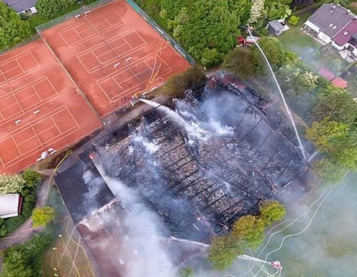 Eching – Die gigantische Rauchwolke war am Sonntag bis in die benachbarten Landkreise zu sehen. Am Tag nach dem Flammeninferno in Eching (Kreis Freising), ist von der in Brand geratenen Tennishalle kaum mehr etwas übrig. Bis auf die Grundmauern brannte die Halle nieder. Die Kriminalpolizei beziffert