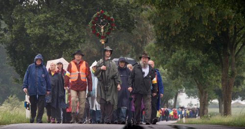 Dem Regen trotztendie rund 4000 Pilger, die sich gestern von Regensburg aus zur traditionellen Fußwallfahrt nach Altötting aufgemacht haben. 111 Kilometer wird der Pilgerzug bis zu seinem Ziel zurücklegen, wo er am Samstag ankommen soll. Auf dem Weg schließen sich immer wieder weitere Pilger der kil