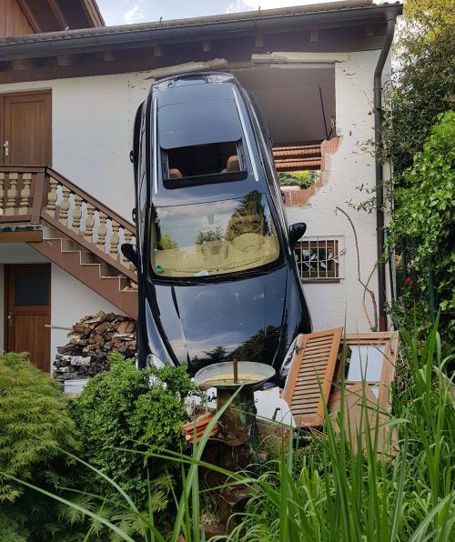 So ein Pech! Seinen schönen Porsche Cayenne (Neupreis ab 75 000 Euro) hat ein älterer Herr in der Umgebung von Waldkraiburg (Kreis Mühldorf) in seinem Garten hochkant auf der Front „geparkt“. Das Malheur konnte passieren, weil der Wagenbesitzer am Hang wohnt und seine Garage sich deswegen im ersten