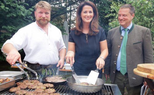 München – An ihrer Kochmontur muss die Ministerin noch feilen. Die hochhackigen Schuhe und das schwarze Kleid sind dann doch etwas unpraktisch zum Grillen. Aber für ein kurzes Foto und das fachmännische Wenden der Rehpflanzerl geht’s auch ohne Schürze, wie Bayerns Landwirtschaft