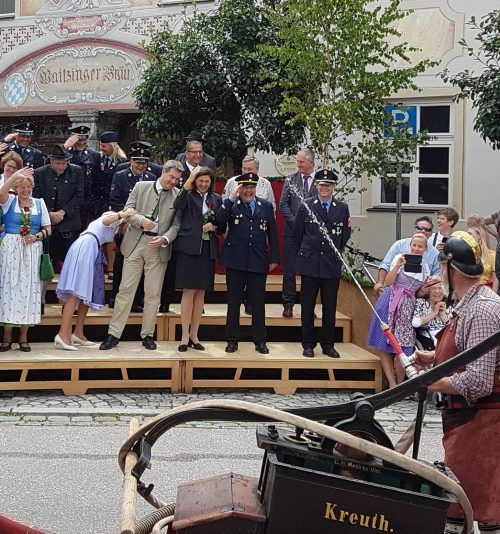 Den Ministerpräsidenten nass gemachtAn die Herzlichkeit im Oberland muss sich der Franke Markus Söder wohl erst noch gewöhnen. Beim Festzug am Sonntagmittag in Miesbach – die Stadt feierte ihre Stadterhebung vor 100 Jahren und die Feuerwehr ihr 150-jähriges Bestehen – gab sich auch Bayerns Ministerp