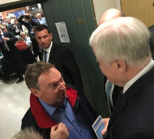 Denklingen – Der Defiliermarsch hat schon begonnen, Horst Seehofer will feierlich in die Mehrzweckhalle einmarschieren – da stellt sich ihm ein alter, wenn auch nicht sonderlich guter Bekannter in den Weg. Claus-Peter Reisch, der streitbare Kapitän des Rettungsschiffs „Lifeline“, passt den Bundesinn