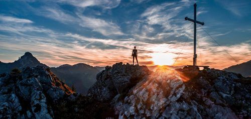 Für diesen Sonnenuntergang hat sich der schweißtreibende Aufstieg auf den Leonhardstein im Kreis Miesbach allemal gelohnt. Diese Aufnahme ist unserem Leser Sebastian Ulmer gelungen. Er ist mit seiner Freundin Christine, die sich freundlicherweise als Gipfel-Model zur Verfügung stellte, auf eine Sonn