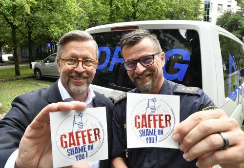 Sensationsgier statt Respekt, Neugier statt Mitgefühl: Tagtäglich haben Polizisten mittlerweile mit Gaffern zu tun. Mit Menschen, die bei schrecklichen Unfällen das Handy zücken und fotografieren. Um auf dieses Problem hinzuweisen, hat die Deutsche Polizeigewerkschaft jetzt eine Aufkleber-Aktion gestartet.