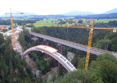 Die spektakulärste Baustelle Bayerns erreicht die nächste Phase: An der Echelsbacher Brücke, der Verbindung zwischen den Landkreisen Weilheim-Schongau und Garmisch-Partenkirchen hoch über der Ammerschlucht, steht der Überbau des historischen Brückenbogens an.