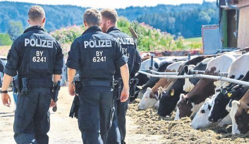 Wieder waren Dutzende Polizisten in der Gemeinde Bad Grönenbach im Allgäu im Einsatz. Diesmal durchsuchten sie einen dritten Bauernhof wegen des Verdachts auf Verstöße gegen das Tierschutzgesetz. In dem Rindermastbetrieb waren Tiere mit Verletzungen und Wunden vorgefunden worden, zudem sei ein Stall