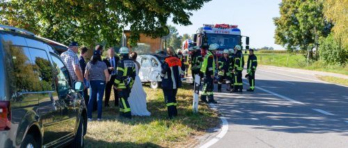 Waging – Scherben bringen Glück, sagt man. Aber ein Blechschaden? Ihn sollte ein frisch getrautes Brautpaar aus Österreich auch als gutes Omen nehmen, es hilft ja nichts! Das Paar ist auf der Fahrt von der kirchlichen Hochzeit zum Hochzeitsbankett verunglückt.