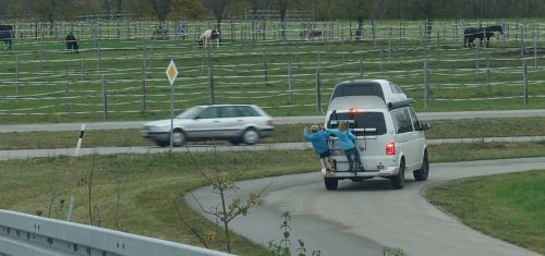 Fuchstal – Etliche Autofahrer im Fuchstal (Landkreis Landsberg am Lech) trauten am Sonntag ihren Augen nicht: Der Fahrer eines weißen VW-Busses hat seine beiden kleinen Kinder auf einer Parallelstraße zur B 17 auf dem Heckstoßfänger seines Fahrzeugs transportiert. Der Bub und das Mädchen standen ung