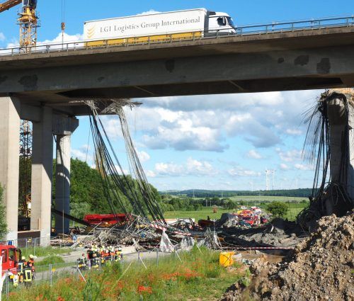 Schweinfurt – Für die Leute auf dem Bau war es eine Art GAU: 1500 Tonnen Beton hatten sie schon gegossen, um die Schraudenbach-Talbrücke auf der A 7 bei Werneck in Unterfranken ein Stück voranzubringen. Dann gab ein Joch des provisorischen Traggerüstes nach. 13 Menschen wurden