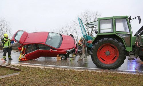 Auto verkeilt sich in Traktoranhänger: fünf Verletzte