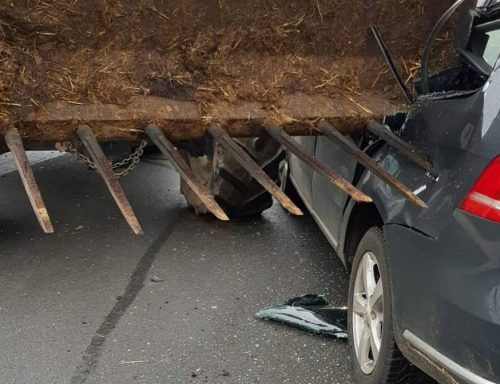 Riesiges Glück hatten zwei Babys und ihre Mutter bei einem Verkehrsunfall nahe Hahnbach in der Oberpfalz. Beim Zusammenprall mit einem Traktor samt heruntergelassener Frontlader-Mistgabel bohrten sich die Zinken in das Auto – erwischten aber keinen der Insassen. Der 49-jährige Traktorfahrer hatte be