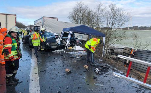 München/Altdorf – Der Wintereinbruch im Freistaat war wohl die Ursache für einen schweren Verkehrsunfall auf der A 6 nahe Altdorf bei Nürnberg. Im dichten Schneetreiben kam es gestern im morgendlichen Berufsverkehr zu einer folgenschweren Massenkarambolage mit 17 beteiligten Fahrzeugen, darunter sie