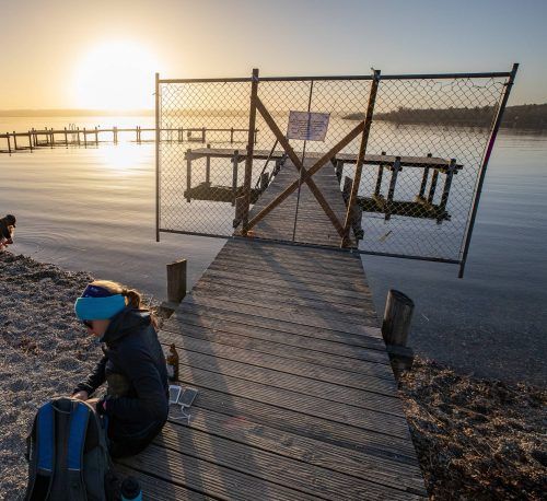 Junge Leute, die es sich bei sonnigem Wetter auf den Stegen von Ammersee und Starnberger See bequem machen – das wird es erst einmal nicht mehr geben. Das Landratsamt Starnberg hat auf Bitten der Polizei alle öffentlichen Stege an den Seen sperren lassen. Mit Bauzäunen wurden die Stege wie hier auf