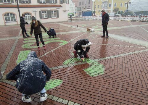 Erding/Freising – Eine kleine Gruppe Schülerinnen und Schüler pinselt einen Satz auf das rote Pflaster vor dem Erdinger Rathaus. „No more empty promises“ steht in giftgrünen Großbuchstaben auf dem Boden, zu Deutsch: keine leeren Versprechungen mehr. Jana Schröder, 18, ist eines de