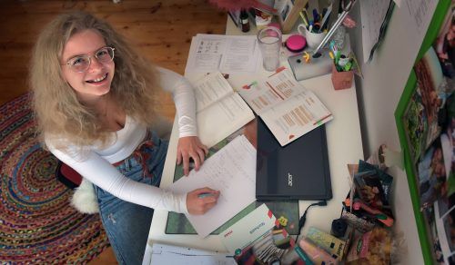 „Wir haben bis zum letzten Tag vor den Prüfungen Unterricht. Und zwar gemeinsam in der Schule, bei uns werden die Kurse auf mehrere Räume verteilt. Das klappt eigentlich ganz gut: In einem Klassenzimmer unterrichtet der Lehrer, die anderen Räume sind