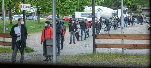Ebersberg – Wo sich früher Festgäste vergnügten, bildete sich am Samstag eine lange Menschenschlange ernst dreinblickender Menschen mit Mundschutz: Zur Massenimpfaktion in der Ebersberger Volksfesthalle kamen zahlreiche Impfwillige. Einige hatten sogar die Nacht vor Ort verbracht, viele andere waren