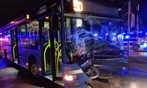 München – Schock in Freimann: Ein BMW-Fahrer hat am Sonntag gegen 23.30 Uhr einen MVG-Bus gerammt. Sieben Personen wurden bei dem Unfall verletzt – zum Glück schwebt niemand in Lebensgefahr. Der 20-jährige BWM-Fahrer raste laut Polizei auf der Ungererstraße Richtung Süden. Mit im Auto waren zwei 19-
