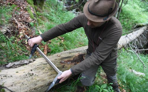Garmisch-Partenkirchen – Die Nadeln junger Fichten kratzen über das Gesicht, vom Regen nasse Pestwurzblätter durchfeuchten die Hosenbeine bis zum Oberschenkel. Unter hohem Gras verbergen sich heimtückische Löcher im Boden. Dennoch schleppen Felix Bierling und Christoph Riedel ihre