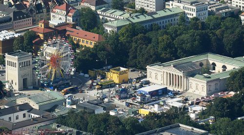 Organisatoren schauen sich die Veranstaltungsorte in der Münchner Innenstadt aus der Luft an