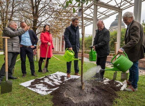 München – Es dauert nur ein paar Spatenstiche, schon ist der Kirschbaum eingepflanzt. Ministerpräsident Markus Söder (CSU), Norbert Schäffer vom Landesbund für Vogelschutz und Bund-Naturschutz-Vorsitzender Richard Mergner greifen gemeinsam zu den Gießkannen. Dass die drei so harm
