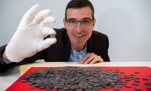 Augsburg – Grau und etwas unscheinbar sind sie, die 500 alten Münzen, die auf einem roten Tuch in Augsburg präsentiert werden. Doch die noch unpolierten Denare sind von unschätzbarem Wert für Archäologen und für die Stadt Augsburg. Denn sie sind Teil eines spektakulären römische