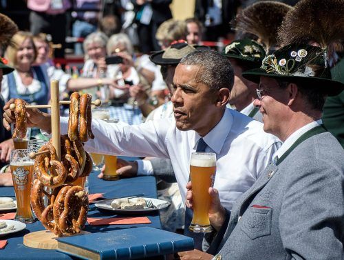 Elmau/München – „Gruß Gott“, rief der US-Präsident über den bayerischen Marktplatz, fast fehlerfrei und auf jeden Fall herzlich. Dann setzte er sich auf eine Bierbank, ließ sich ein alkoholfreies Weißbier bringen, eine Brezn und zwei Weißwürste. Sitz
