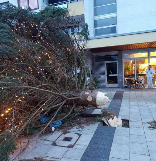 Polizist überlässt nacktem Dieb Hose Christbaum im Zentrum umgestürzt
