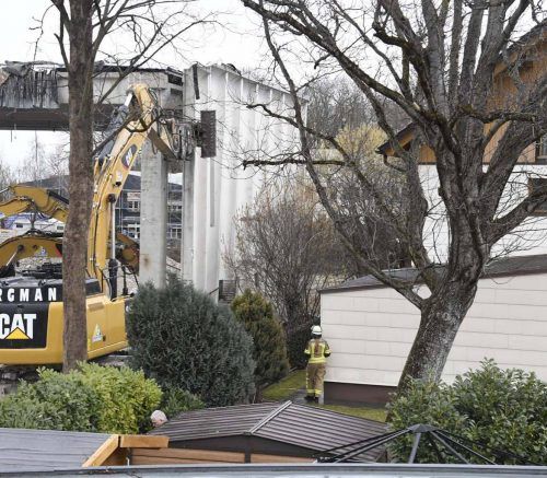 In Aschheim (Kreis München) droht eine 15 Meter hohe Betonwand auf ein Einfamilienhaus zu stürzen. Polizei und Feuerwehr haben das Haus geräumt, das von sechs Personen bewohnt wird. Seit Monaten laufen Abrissarbeiten an dem benachbarten Lagergebäude. Gestern stellten Arbeiter fest, dass eine große H