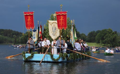 Sie haben den Vorhersagen getrotzt, und Petrus hielt für die Dauer der Seeprozession seine schützenden Hände über Seehausen (Kreis Garmisch-Partenkirchen): Schwarzblau stand der Himmel am Donnerstagvormittag über dem Staffelsee, als die Teilnehmer der berühmten Fronleichnamsprozession über den See r