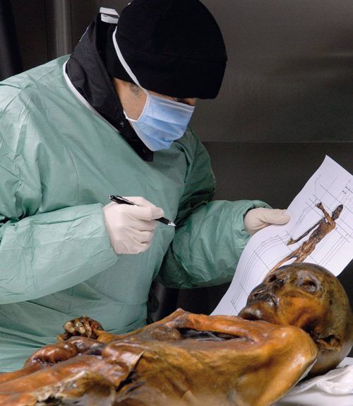 München/Bozen – Ötzi, die Gletschermumie aus dem Tisenjoch am Schnalstal in Südtirol, ist die wohl am besten untersuchte Mumie der Welt. Doch die rund 5300 Jahre alte Leiche des Eismanns regt zu immer neuen Untersuchungen an. Über 800 Forscher aus aller Welt haben sich schon mit der in einer Kühlkam