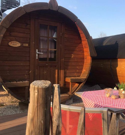 Grainau – Wie viel Platz braucht Luxus? Ein paar Quadratmeter reichen, zumindest wenn man eine Nacht im Schlaffass in Grainau im Kreis Garmisch-Partenkirchen verbringt. Am Fuß der Zugspitze bietet der Fünf-Sterne-Campingplatz vier Fässer zum Übernachten an. Ja, Fässer. Aus Kiefernholz, mit rot-weiß