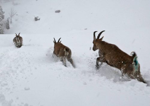 Jachenau – Die Hauptdarsteller des Tages sind ziemlich entspannt. Als sich die Klappen der beiden Viehtransporter öffnen, passiert erst einmal gar nichts. Dann wagt sich eine der Geißen vor. Ein beherzter Sprung in den knietiefen Schnee, und langsam zieht sie weiter Richt